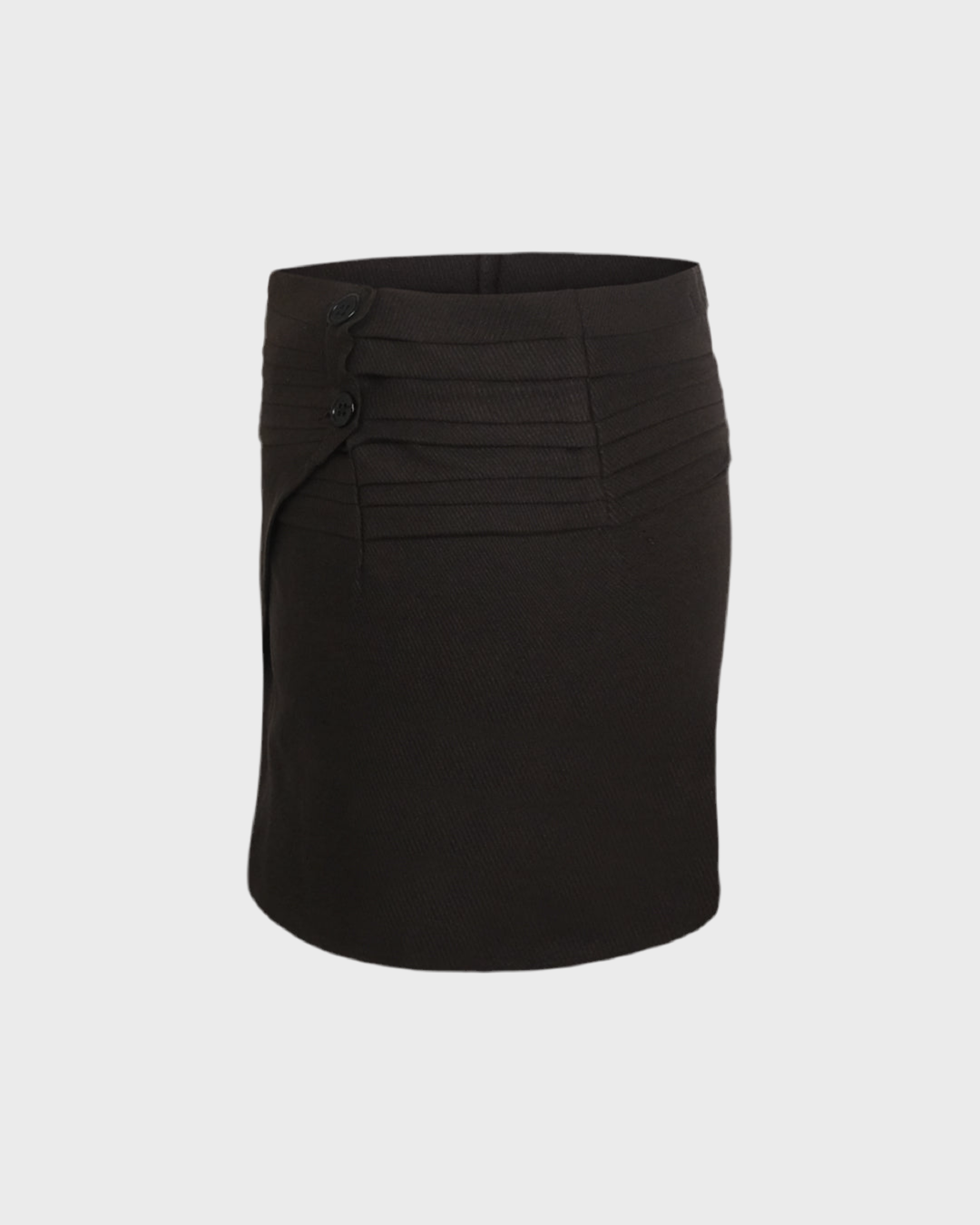Mini wrap skirt crafted, featuring a side closure with two buttons. A chic and versatile piece with a flattering, adjustable fit.