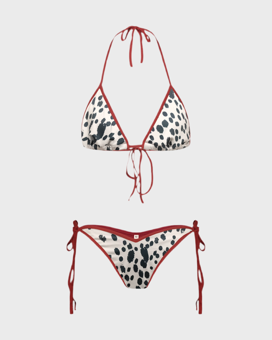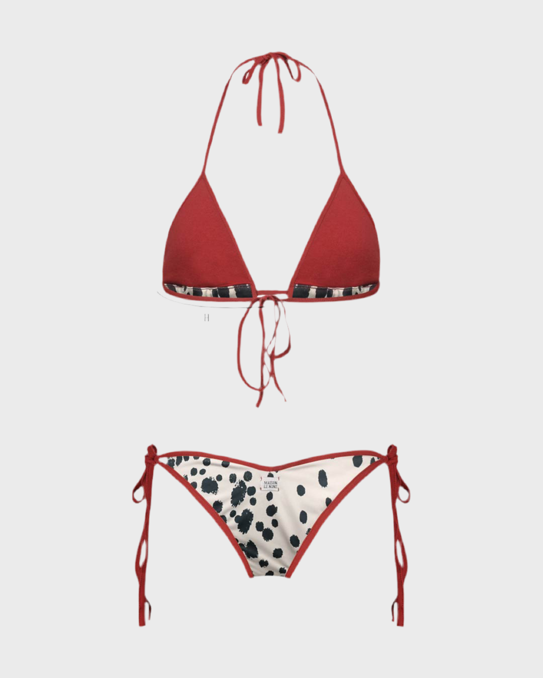 Questo bikini due pezzi presenta uno slip con taglio a V disegnato per valorizzare e allungare la silhouette. Un capo di grande impatto con radici artigianali, realizzato al 100% a mano.