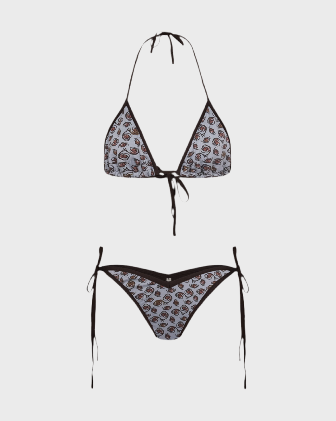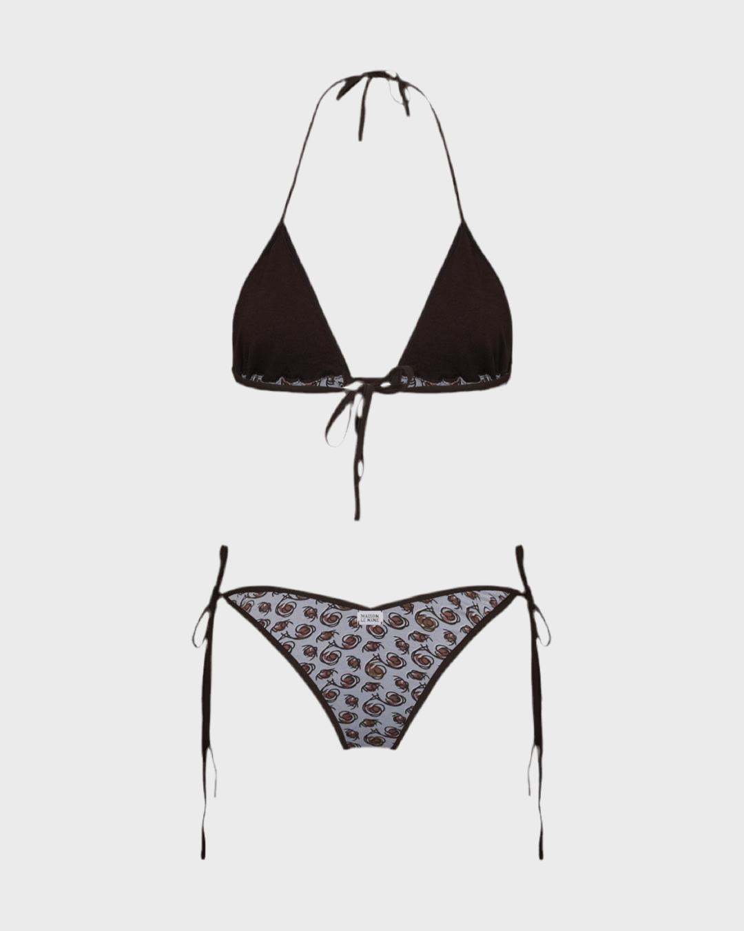 This two-piece bikini features a V-cut bottom designed to enhance and elongate the silhouette. A statement piece with artisanal roots, 100% handcrafted.