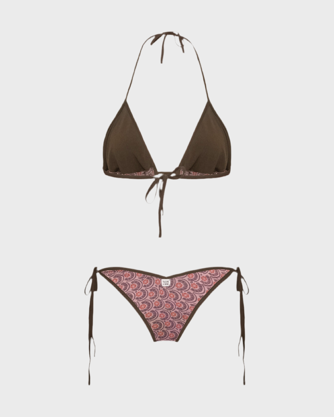 Questo bikini due pezzi presenta uno slip con taglio a V disegnato per valorizzare e allungare la silhouette. Un capo di grande impatto con radici artigianali, realizzato al 100% a mano.