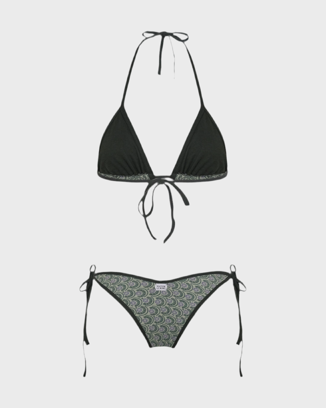 This two-piece bikini features a V-cut bottom designed to enhance and elongate the silhouette. A statement piece with artisanal roots, 100% handcrafted.