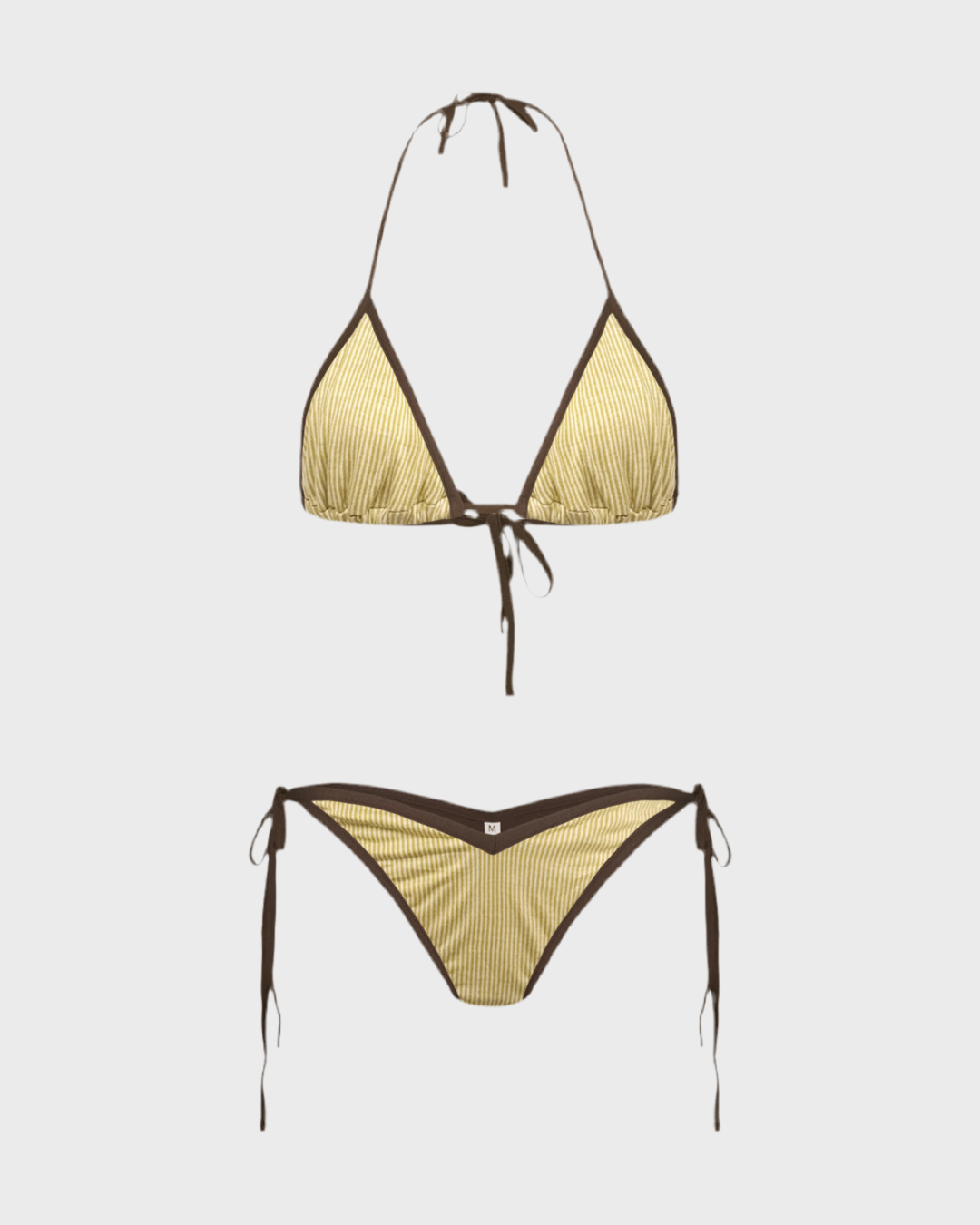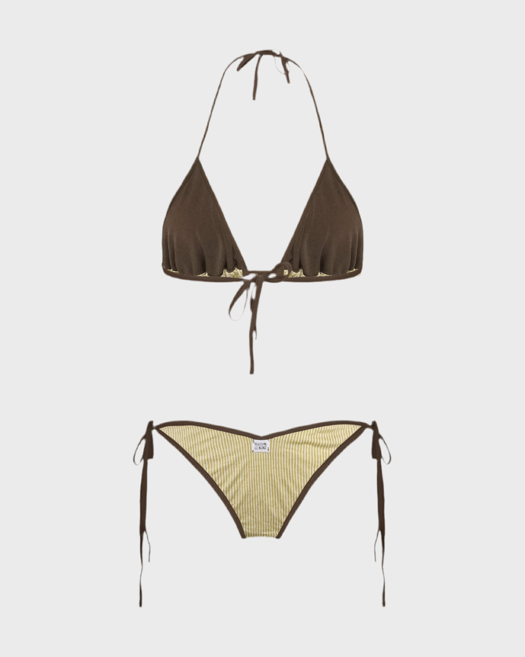 Questo bikini due pezzi presenta uno slip con taglio a V disegnato per valorizzare e allungare la silhouette. Un capo di grande impatto con radici artigianali, realizzato al 100% a mano.