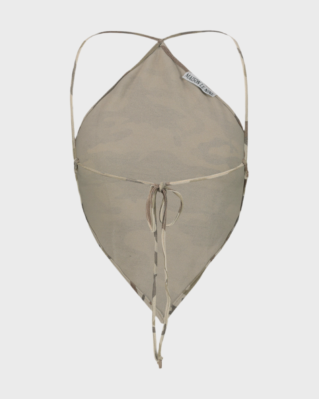Elegante e audace, questo top senza schienale è dotato di lacci posteriori regolabili per una vestibilità perfetta.